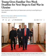 舆论认为,这是特朗普熟悉的“计时器外交”。《华尔街日报》称其为“熟悉的两周期限”:把一段明确的期限公开化,同时把“我给过机会”的叙事摆上台面,以时间倒逼谈判各方,也为后续政策加码预热。阿拉斯加会晤没有产出可执行的停火或三方会面安排,倒计时的设置相当于把责任前置公开若两周后没有实质动静,升级就更容易获得政治上的正当性。