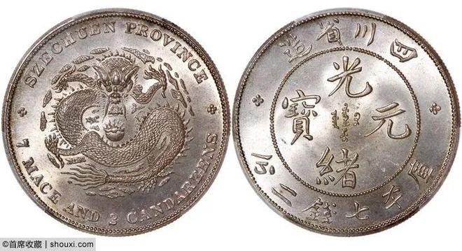 四川光绪三分六厘,PCGS-MS62,铸压有力,龙图立体,2.2万港币落槌;