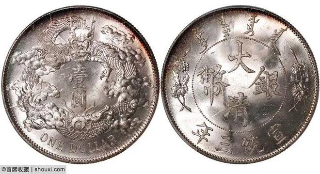 ,造币总厂七钱二分,PCGS-XF92,底光柔泽,酱色包浆,1.4万港币落槌;宣统三年大清银币壹圆,PCGS-MS62,马齿犀利,车轮转光,字口明晰,7万港币落槌;宣统三年大清银币壹圆,PCGS-XF92,重彩环浆,些许清理痕迹,9500港币落槌。光绪34年北洋造七钱二分小字,PCGS-VF35,高边深打,4500港币落槌;光绪34年北洋造七钱二分,PCGS-AU92,龙额凸起,微有偏打,4800港币落槌;湖北光绪七钱二分,PCGS-MS63,底光润泽,包浆轻浅,字口明晰,4.8万港币落槌。