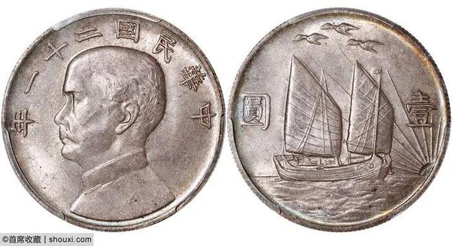 民国九年袁世凯像贰角鄂造,PCGS-XF95,铸压有力,棕灰包浆,2万港币落槌;民国21年孙中山像三鸟壹圆,PCGS-AU58,压印充分,图文立体,8.5万港币落槌;