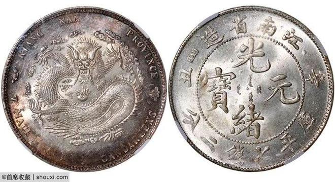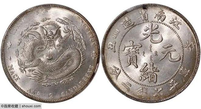 ,PCGS-MS64,铸压深峻,车轮转光,边缘些许五彩包浆,17万港币落槌,含佣约合人民币19.38万元成交;光绪24年安徽七钱二分ASTC高四,PCGS-AU92,压铸充分,底光透亮,6.5万港币落槌。浙江魏碑体三分六厘,PCGS-MS63,光泽温润,龙图饱满,2.2万港币落槌;浙江魏碑体三钱六分,PCGS-AU92,光泽犹在,棕色包浆,15万港币落槌;光绪25年北洋造七钱二分,PCGS-MS62,光色润泽,字口明晰,13万港币落槌。