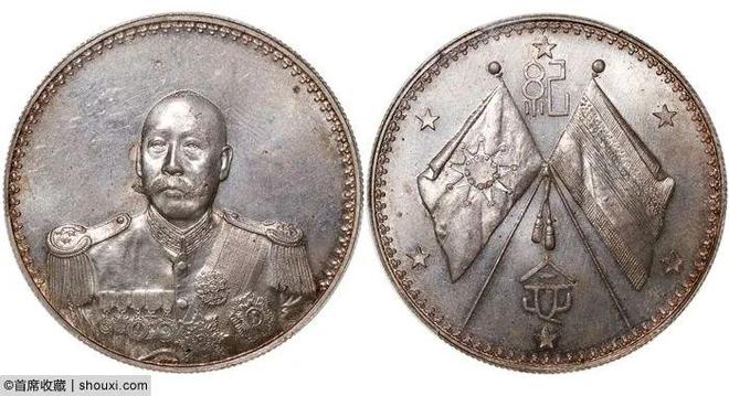,PCGS-MS62,光色温润,底板细腻,13万港币落槌,含佣约合人民币14.82万元成交;连续2枚PCGS-MS63民国23年孙中山像船洋壹圆,状态不一,依次以6000、3200港币落槌;民国23年孙中山像船洋壹圆云南版,PCGS-AU55,底光透现,边缘局部灰黑包浆,4000港币落槌。黎元洪像开国纪念壹圆无帽,NGC-MS62,色泽纯正,五彩浓郁包浆,须发毕现,9.5万港币落槌;富字正银半两,PCGS-XF45,五彩包浆,质感细腻,1.5万港币落槌;富字正银一两,PCGS-AU53,底光犹存,图文清晰,1.8万港币落槌。