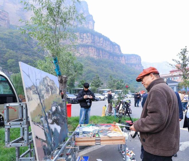 活动现场聚集了一批写生的高校师生,他们在山水之间支起画架,以青春的笔触描绘着眼前的巍巍太行,构成了一幅“人在画中,画在景中”的动人图景。
